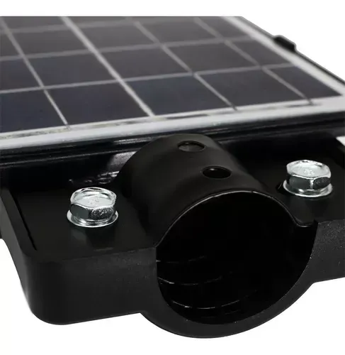 Especificações Potência: 100W Autonomia: de 8 até 12 horas Temperatura da cor: branco frio 6500K Ângulo de Abertura : 120° graus Bateria: de lítio Material: Plástico Duro Fluxo luminoso: 10000 lúmens Proteção: IP66 (resistente à chuva e ao calor) Painel solar monocristalino Ideal para p