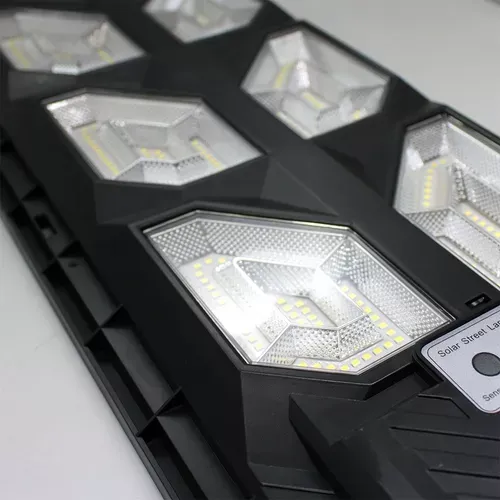 Especificações Potência: 350W Autonomia: de 8 até 12 horas Temperatura da cor: branco frio 6500K Ângulo de Abertura : 120° graus Bateria: de lítio Material: Plástico Duro Fluxo luminoso: 35000 lúmens Proteção: IP66 (resistente à chuva e ao calor) Painel solar monocristalino Ideal para p